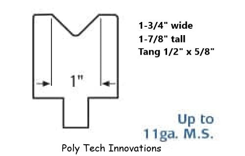 - All urethane press brake dies have a standard 1/2″ x 5/8″ tang.